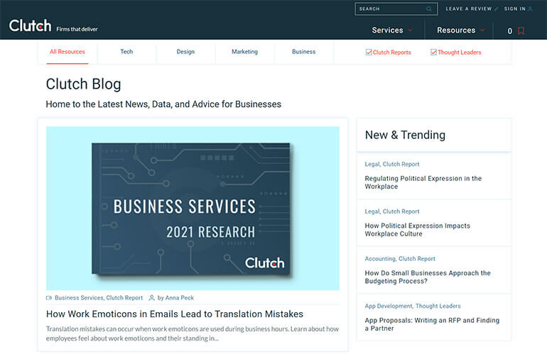 Clutch is a review site for agencies and has become the de-facto agency directory. Their blog is an important source of information for agencies not only about the industry in general but for keeping up to date with what Clutch are working on and the developments they are making.