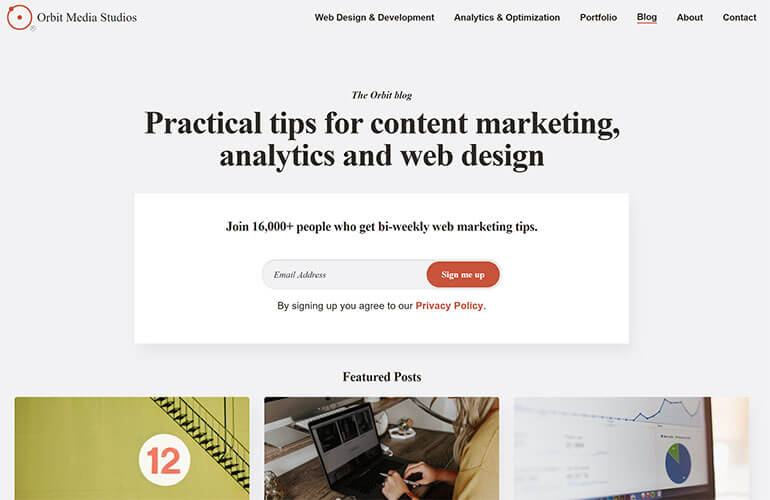 Orbit Media Studios is a leading digital marketing agency based in Chicago. Their Co-Founder Andy Crestodina is an authority on SEO and digital marketing. Their team of over 40 "Orbiteers" spread across design, development, digital marketing, project management regularly contribute to their blog.