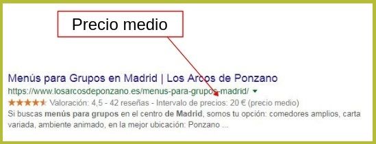 Si todavía no has incluido este tipo de datos en tu web, ponte con ello ya mismo porque es un factor que marca la diferencia. Tus snippets mejorarán visiblemente en los resultados de búsqueda, ofreciendo información complementaria. Son lo que llaman “rich snippets”. Aquí puedes ver un ejemplo para recetas y precios:
