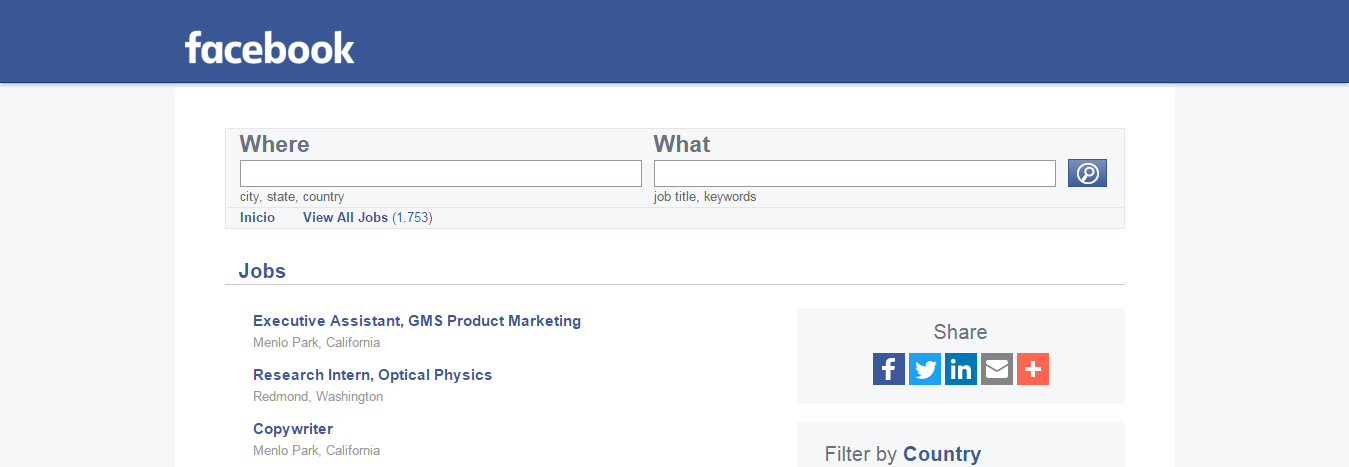 Te dejo una imagen de la página web principal de Facebook Jobs, para que juzgues tú mismo: