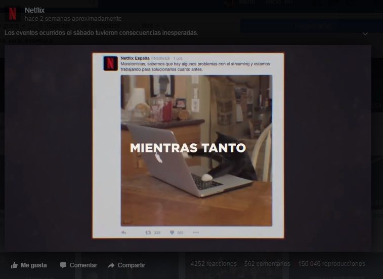 ¿Existe una peor crisis que que te acribillen a comentarios vía Twitter el día más tráfico tiene tu servidor? No, pero Netlix supo gestionarla y salir reforzadísimo de esta crisis de reputación online. Su gracioso vídeo se ha convertido en uno de lo más visto de su página de Facebook.